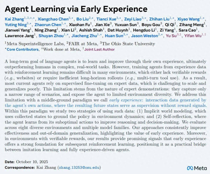 上周末,一篇来自 META 超级智能实验室(MSL)、FAIR、俄亥俄州立大学的研究为该问题提供了一种解法。
